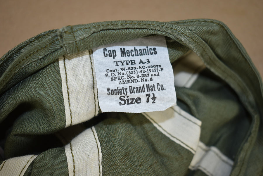 A-3 Mechanic's cap, size 7. Dated 1942. It was never used but has some slightly discoloured spots due to age, which is reflected in the price.