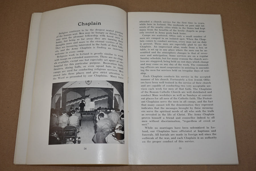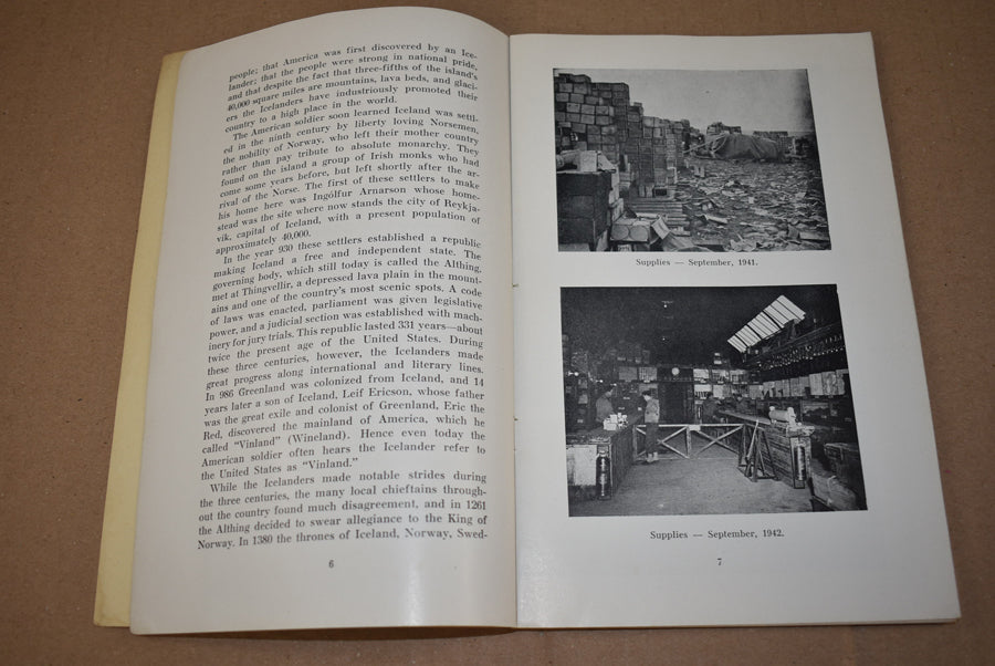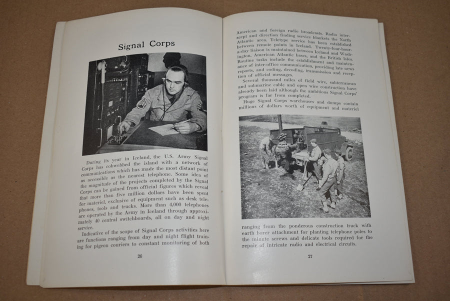 Armed Guardians, one year in Iceland. Softcover booklet about the US forces on Iceland. Printed in 1942. It contains 94 pages with many pictures. Comes with an additional leaflet about Enlisted Men's Items that was in the booklet.