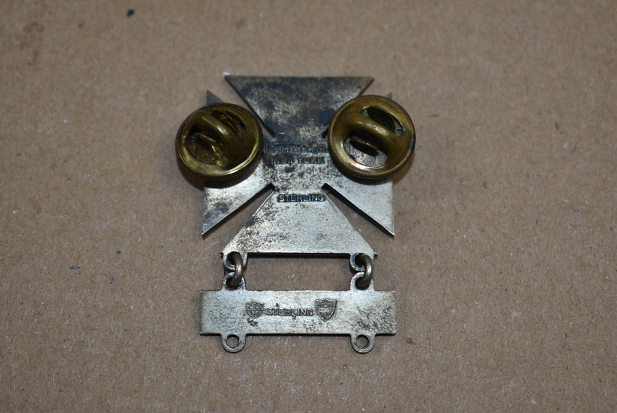 Badge de qualification Marksman 2e class avec barre Pistol Sterling marqué.