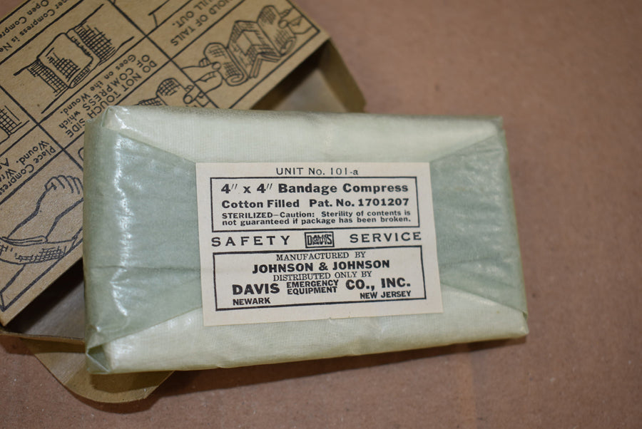 Bandage Compress 4 x 4 inches. Manufactured by Davis Emergency Equipment Co., Inc.