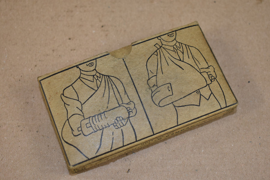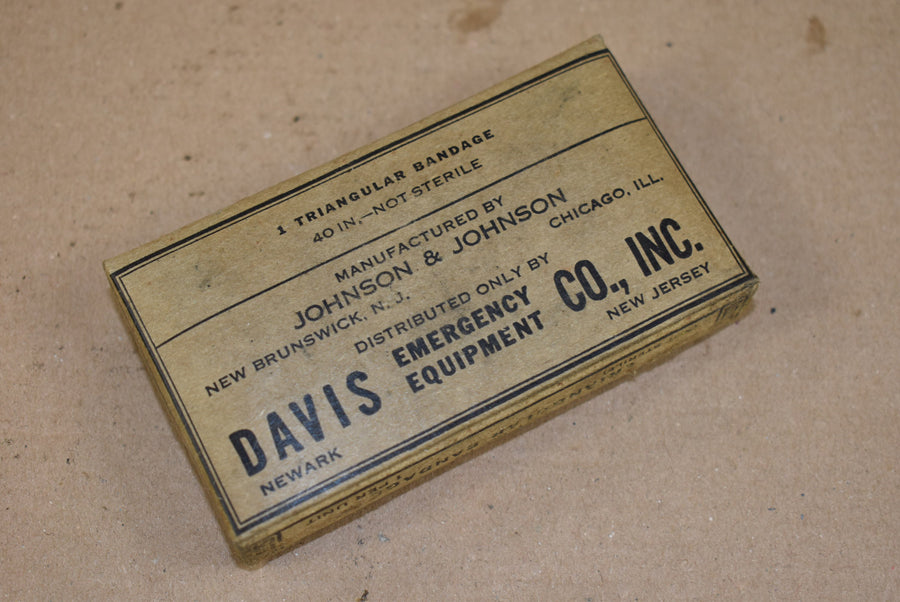 Triangular bandage, complete with safety pins. Stock Nr. 9204100. Produced by Davis. Found in various First Aid kits.