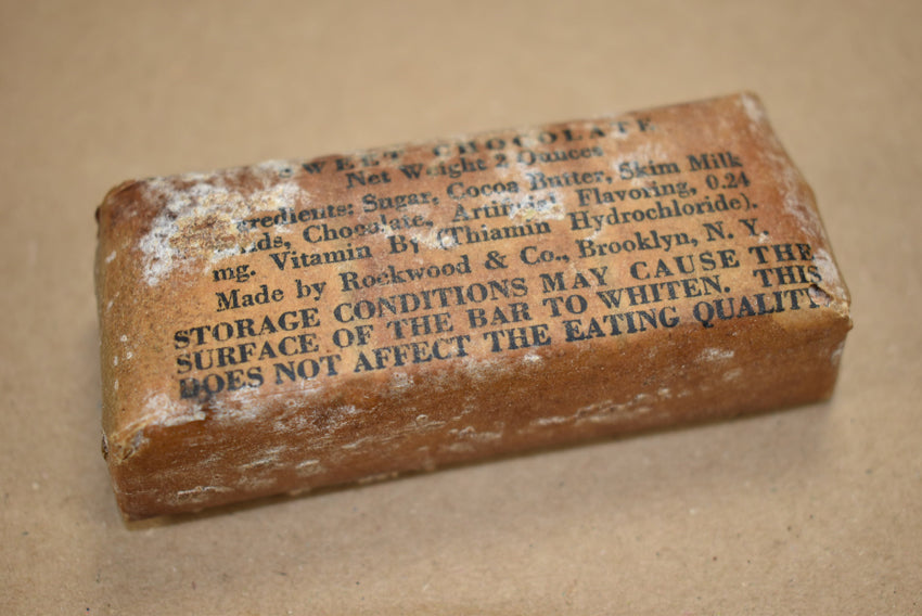 Barre de chocolat sucré de 2 onces. Utilisée dans diverses rations.