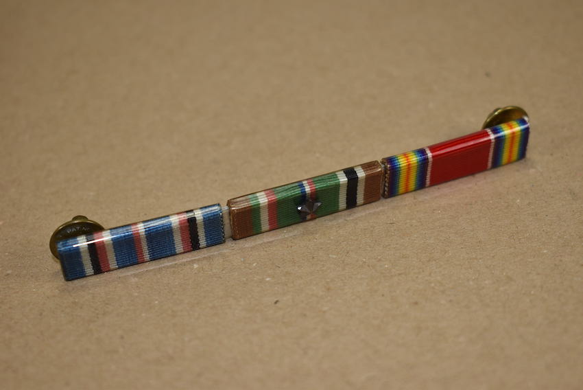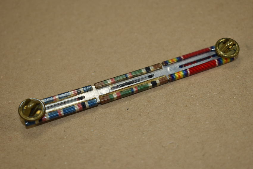 Barre de ruban. Comme porté sur le blouson de sortie.