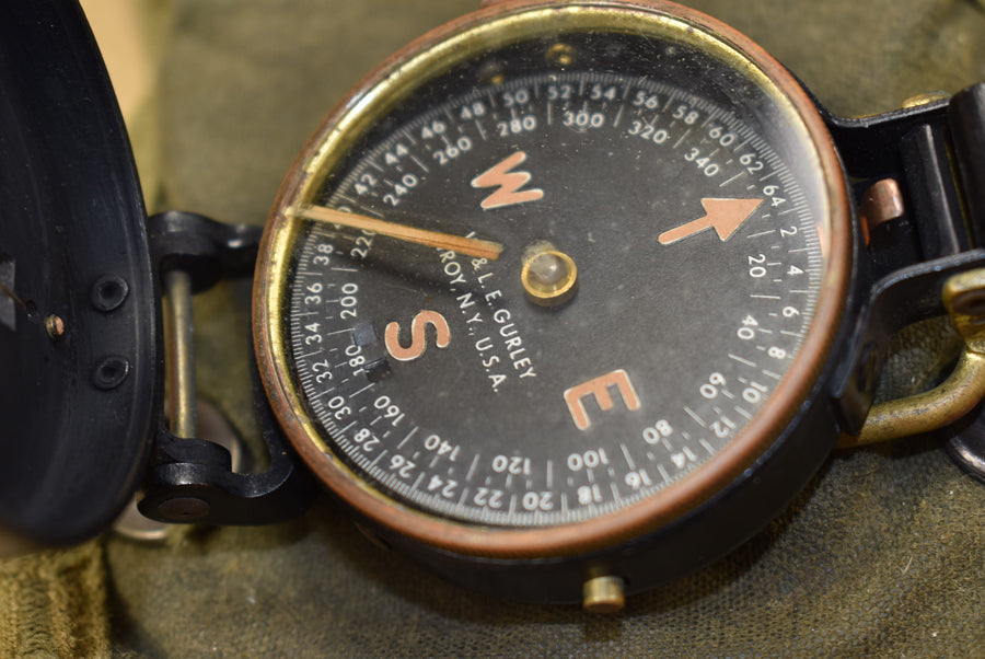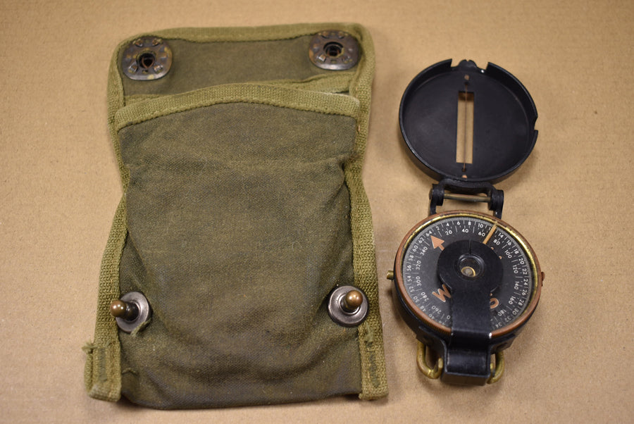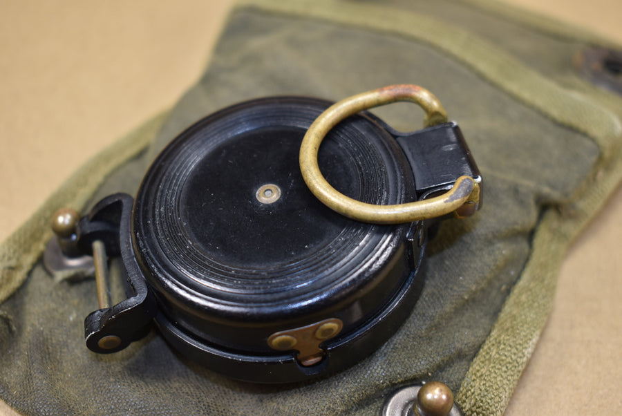 Boussole Lensatic en pochette imprégnée. Fabriqué par W.&L.E. Gurley.