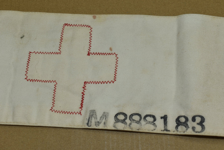 Red Cross armband. With medical registration number stamped on the back.