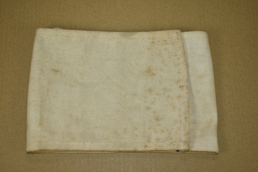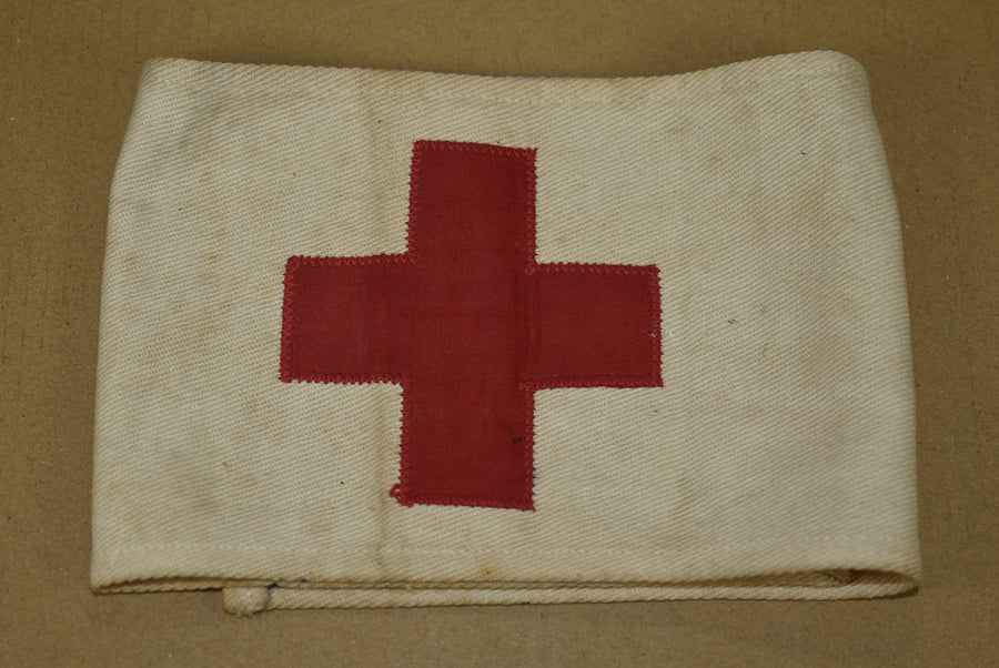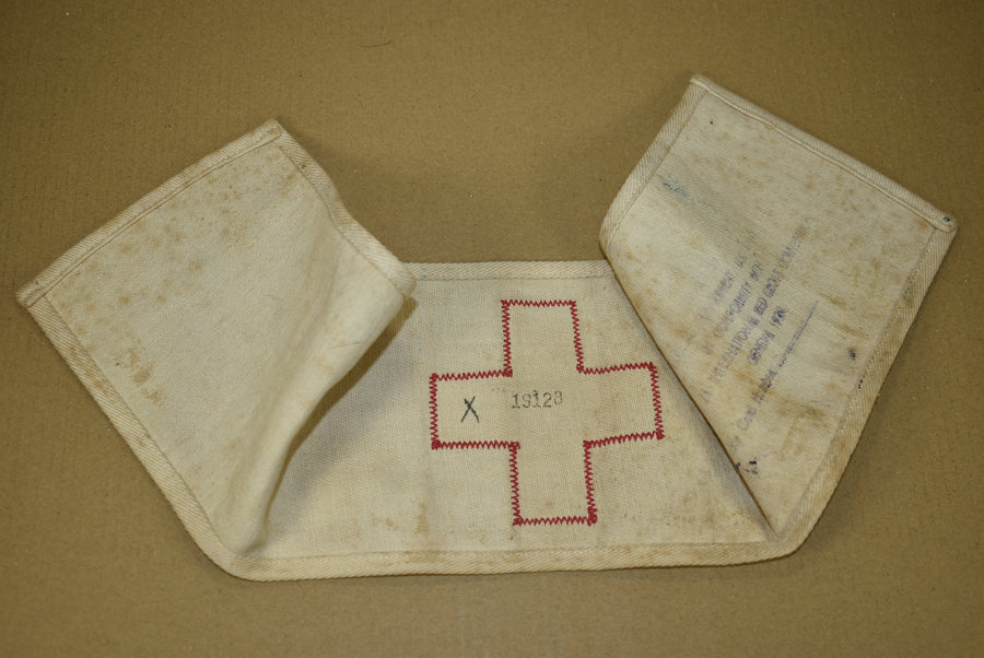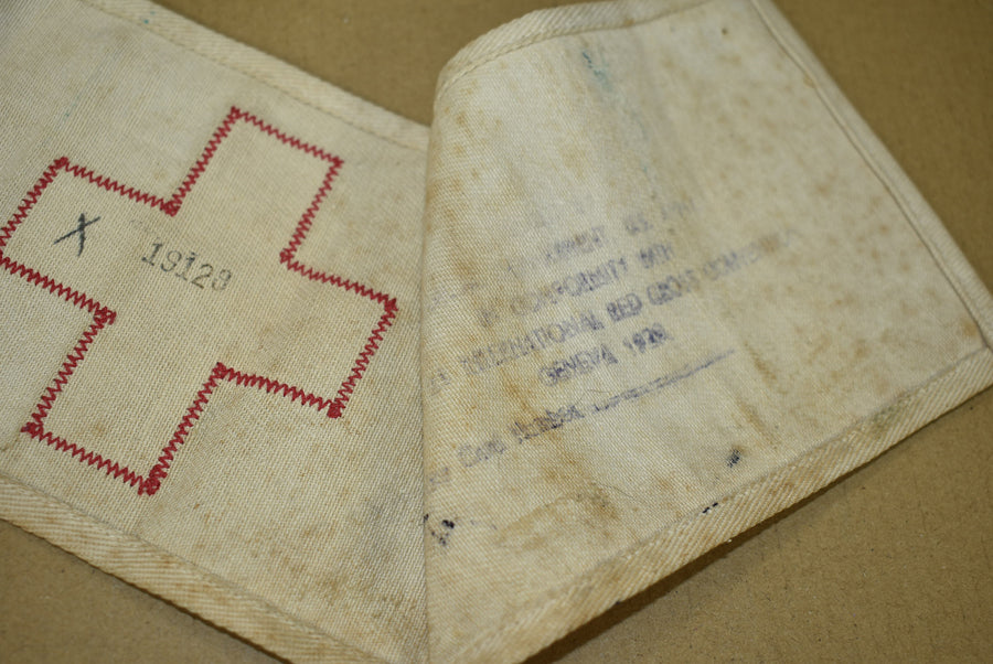 Red Cross armband. With Geneva Convention stamp and medical registration number stamped on the back.