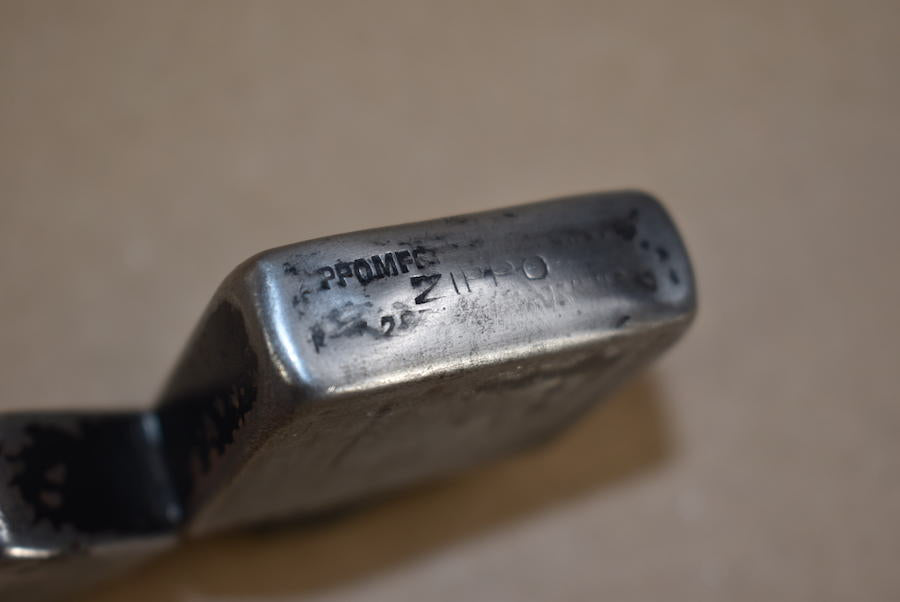 Briquet Zippo emblématique de la Seconde Guerre mondiale, avec sa finition craquelée noire, très prisé des GI's. Pendant la guerre, Zippo ne produisait des briquets que pour l'armée américaine. Ces briquets étaient en acier avec une finition craquelée noire. Cette finition s'estompait généralement. Sa cheminée est percée de 14 trous. Généralement arrondie, la partie supérieure et inférieure du briquet ne tient pas debout. Le ressort fonctionne bien et le couvercle se ferme parfaitement. Le briquet fonctionne toujours ! La pierre a été remplacée par une pierre Zippo neuve, l'ancienne étant détériorée. Après avoir ajouté du liquide Zippo au coton, le briquet s'est allumé comme une bougie de Noël. Les briquets Zippo originaux sont devenus très difficiles à trouver.