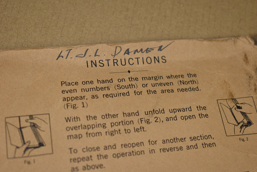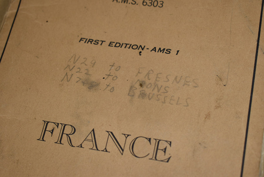 Multi color fold out road map of France. First edition, scale 1:1,000.000. 1944 dated. Named to Lieutenant D.L. Damen