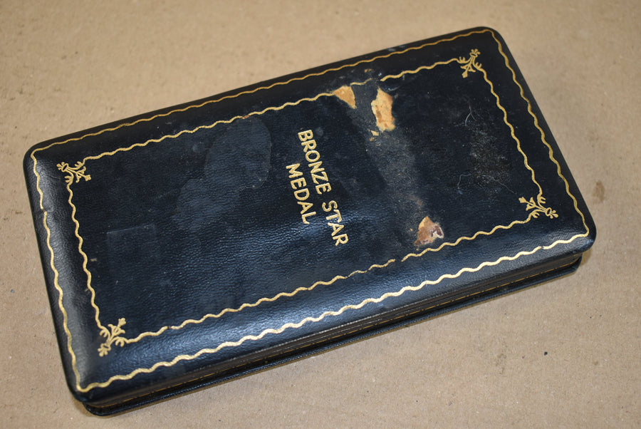 Bronze Star medal set in its coffin case. The medal has the correct brooche with pin construction. Complete with lapel pin and ribbon.