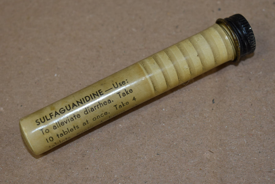 Sulfaguanidine tablets in plastic vial. As found in the E-17 Escape and Evasion kit.