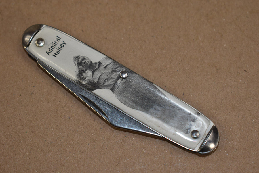 Pocket knife, Admiral Halsey. Commemorative pocket knife made in the USA, likely just after the war.