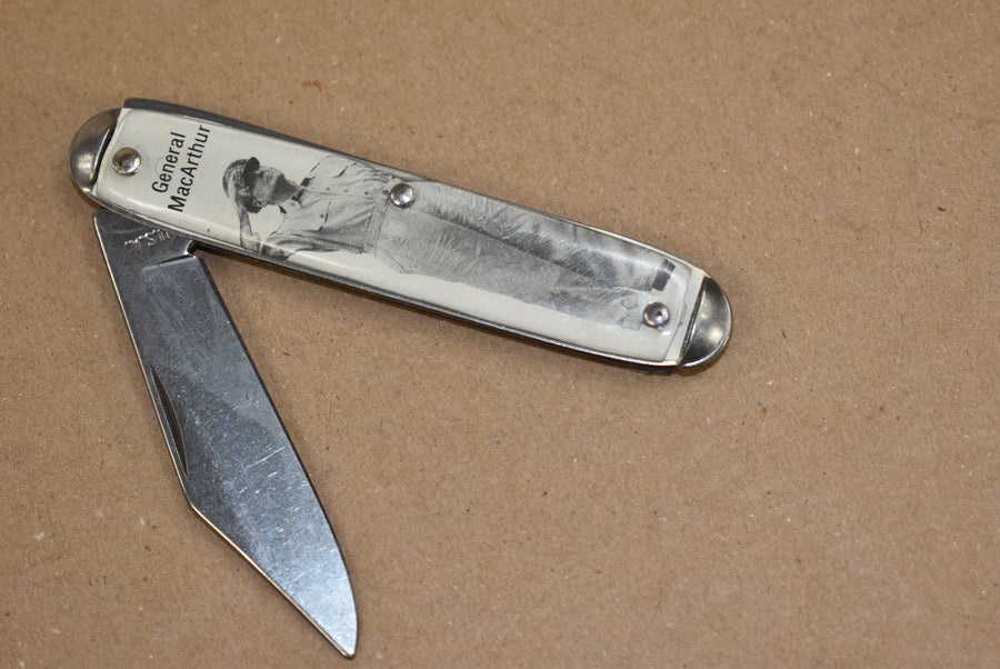 Pocket knife, General MacArthur. Commemorative pocket knife made in the USA, likely just after the war.
