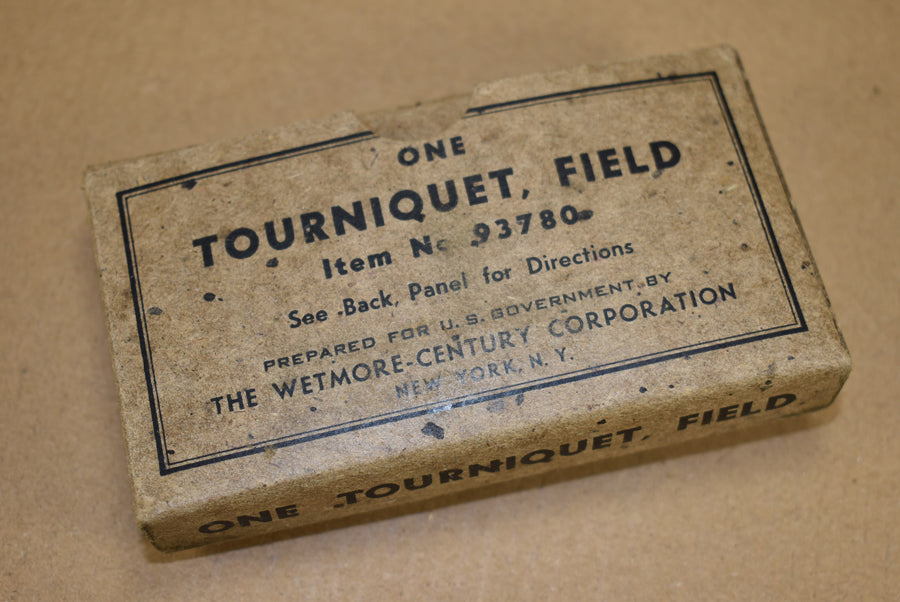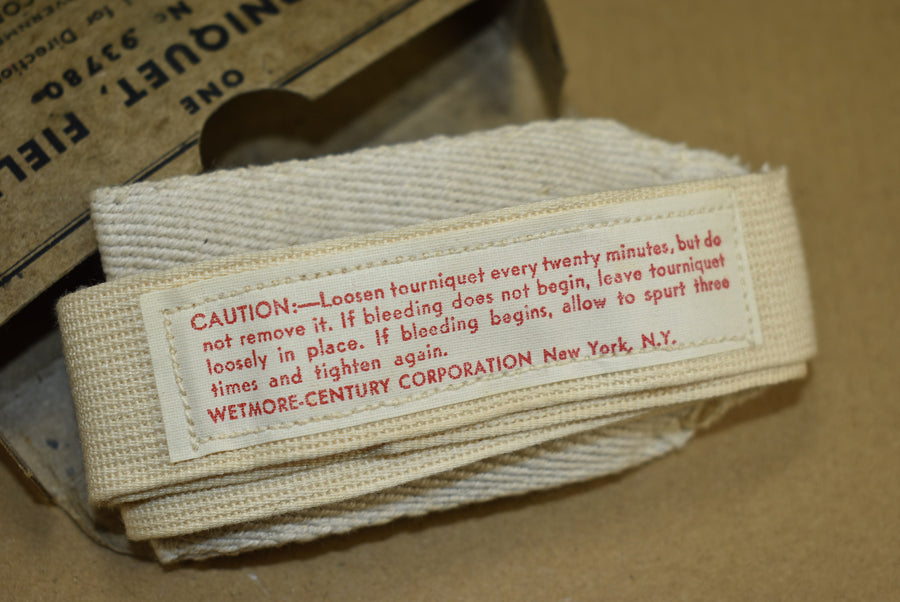 Tourniquet in its box. Early Medical Item Nr. 93780. Produced by The Wetmore-Century Corporation, a rare maker. As used in various First Aid kits.