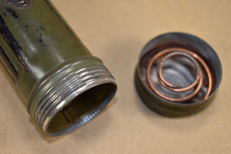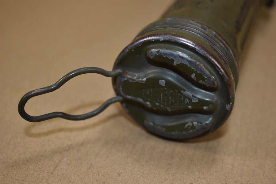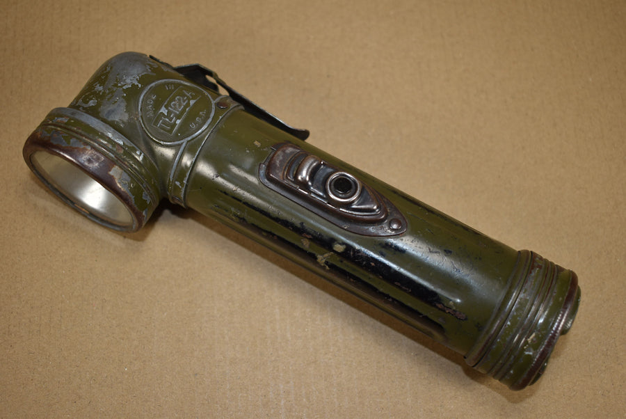 TL-122-A flashlight in working condition. Produced by NIAGARA, a rare maker. Steel body with much of the OD paint still present.