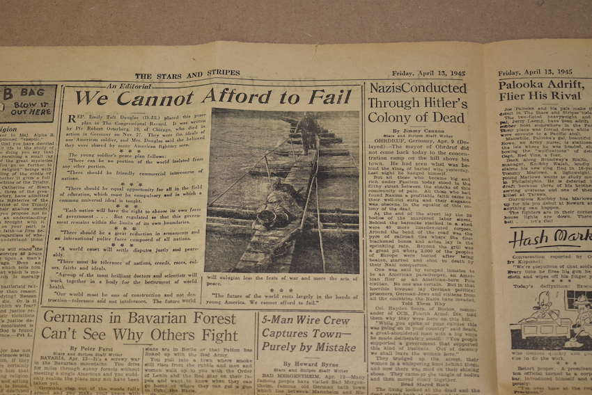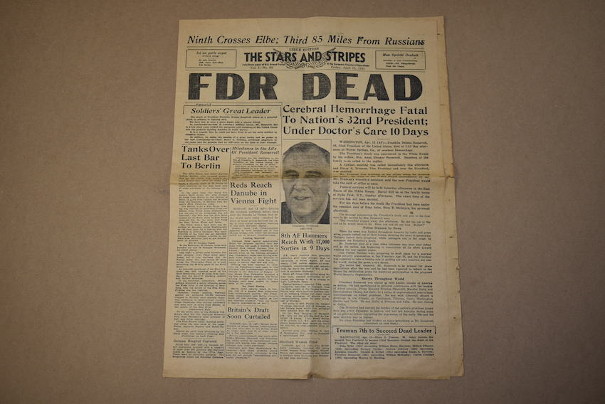 The Stars and Stripes newspaper of April 13, 1945. FDR DEAD.