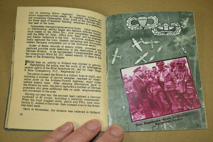 Small souvenir booklet that was issued to the paratroopers of the famous 101st Airborne Division. These booklets have become exceedingly hard to find, especially this nice.
