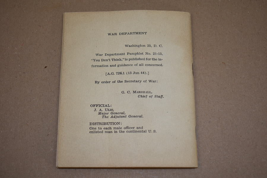 War Department pamphlet 21-5. Pocket size booklet. It was issued to GI's to inform them about the risks of venereal diseases. Dated 1944. Becoming very rare.