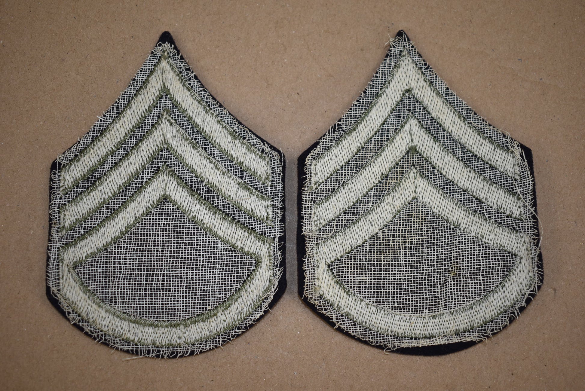 Pair of rank insignia Staff Sergeant. Embroidered on felt with gauze back.