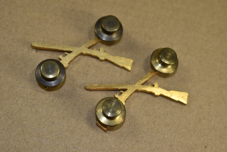 Paire d'insignes d'officier d'infanterie à fusils croisés. Avec des embrayages précoce à traction type Phinney.