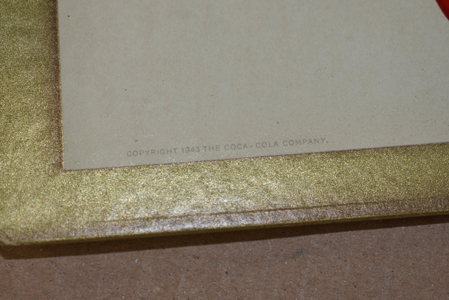 Panneau Coca-Cola en carton mesurant environ 38,5 x 33 centimètres. En 1943, Coca-Cola a publié la première série de 20 panneaux d'avions de combat. Il s'agit du Consolidated B-24 'Liberator' de cette série. La plaque est datée de 1943 dans le coin inférieur gauche. Elle possède encore son fil de suspension d'origine.