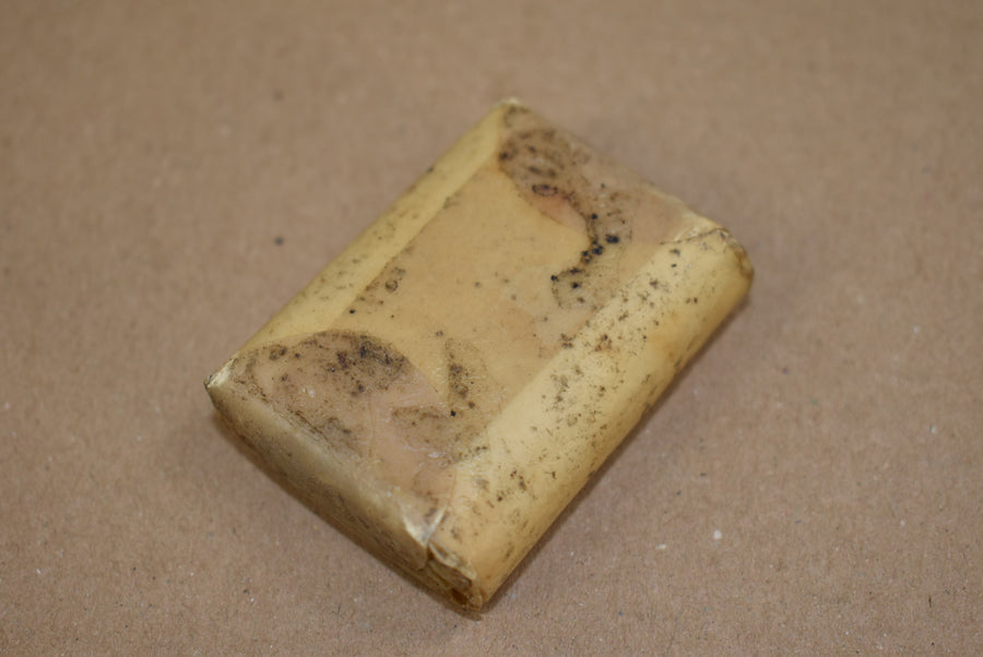 Pansement simple de gaze. 2 pouces, 6 yards. Emballé dans du papier ciré et daté de 1942. Contrat NAVY, Numéro de stock 2-105.
