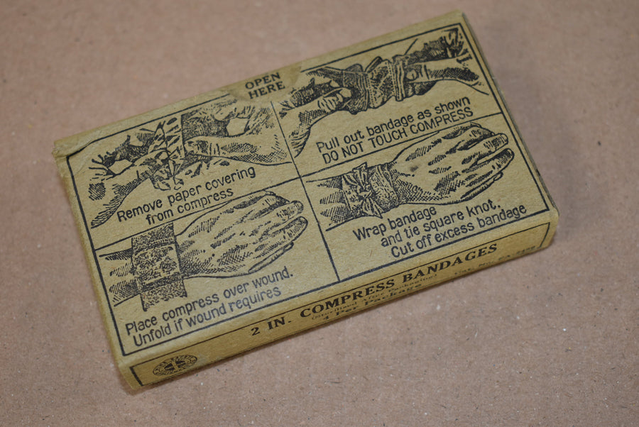 Four 2 Inch Compress bandages in cardboard box. Perfect to complete a First Aid kit.