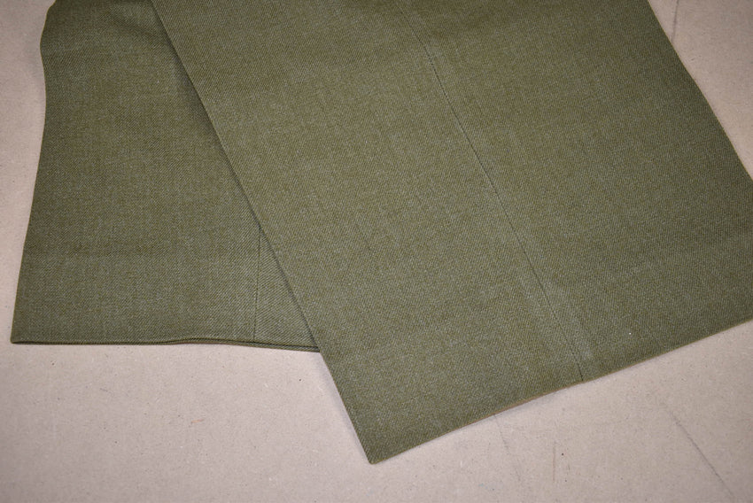 Pantalon en laine, taille 34 x 31 avec patte de boutonnage. L'étiquette est délavée. Tous les boutons sont présents. Il y a une petite réparation.