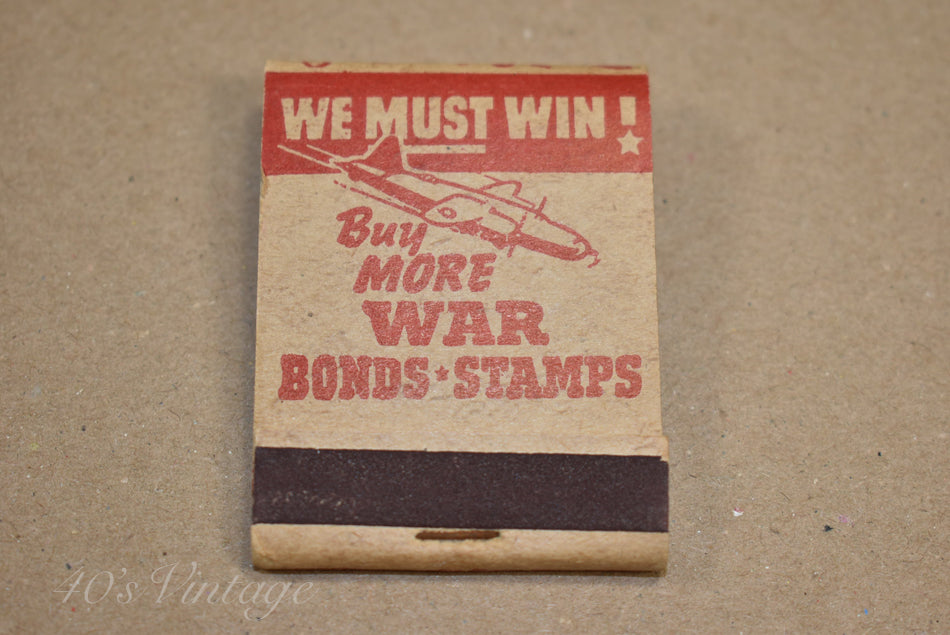 Matchbook 'We must Win', Buy more War Bonds-Stamps. Full package.