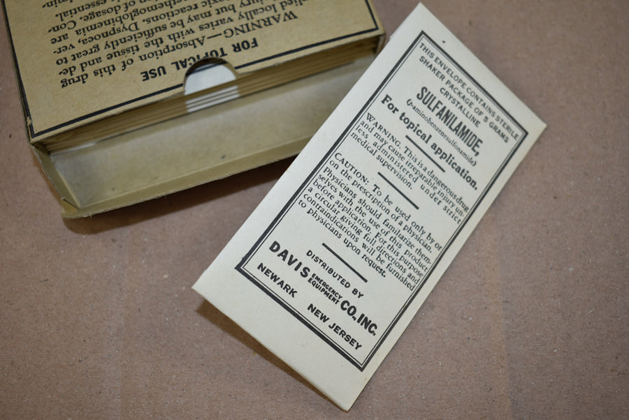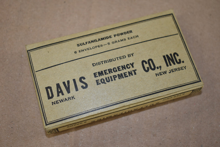 Sulfanilamide powder. Six packages. Manufactured by Davis Emergency Equipment Co., Inc.