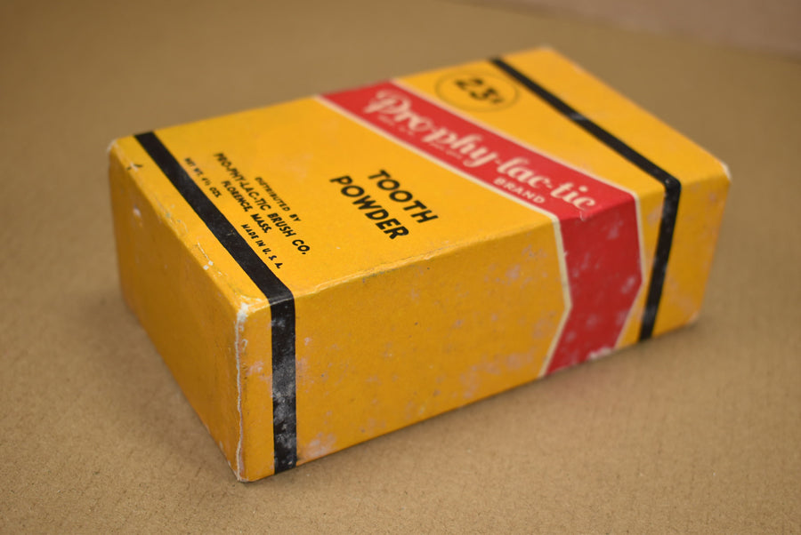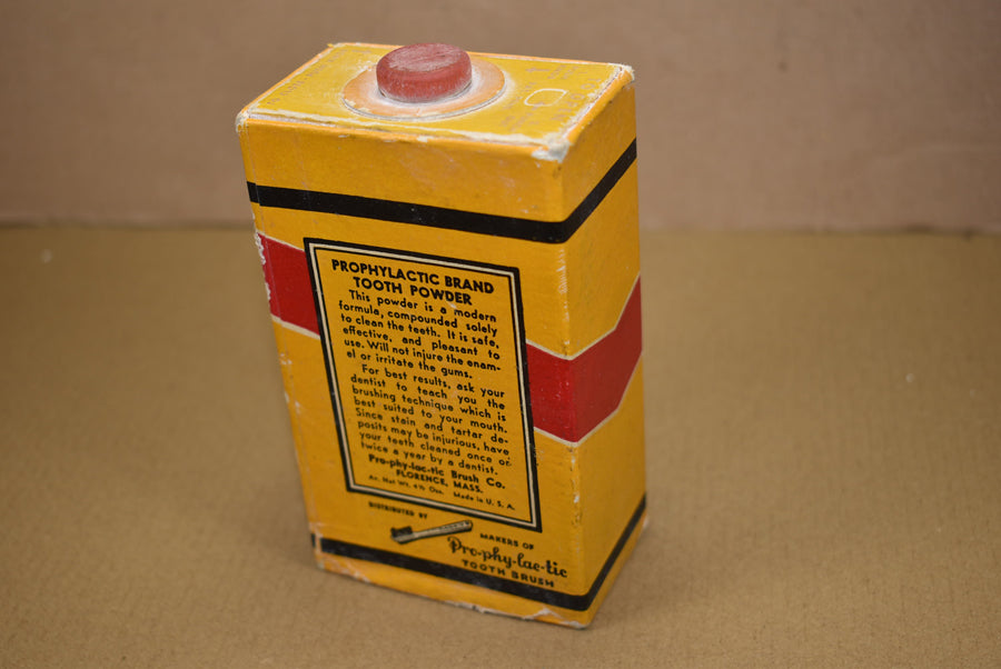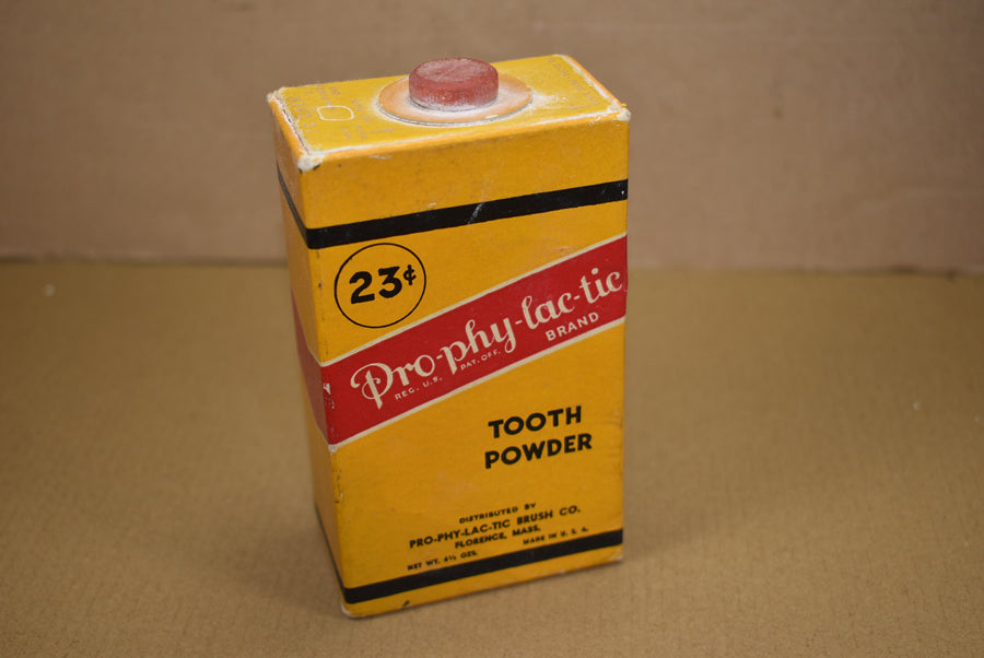 Pro-phy-lac-tic tooth powder. Full new wartime metal-saving 4½ oz. container made of cardboard.