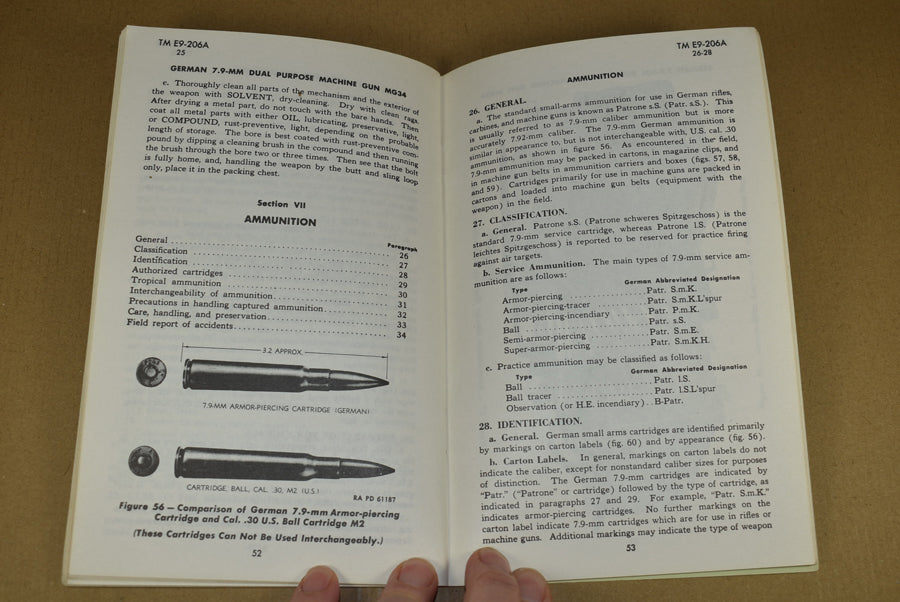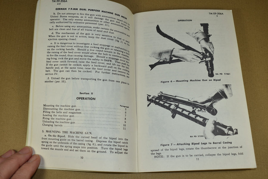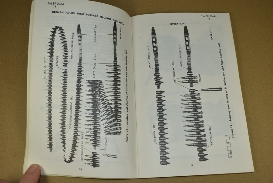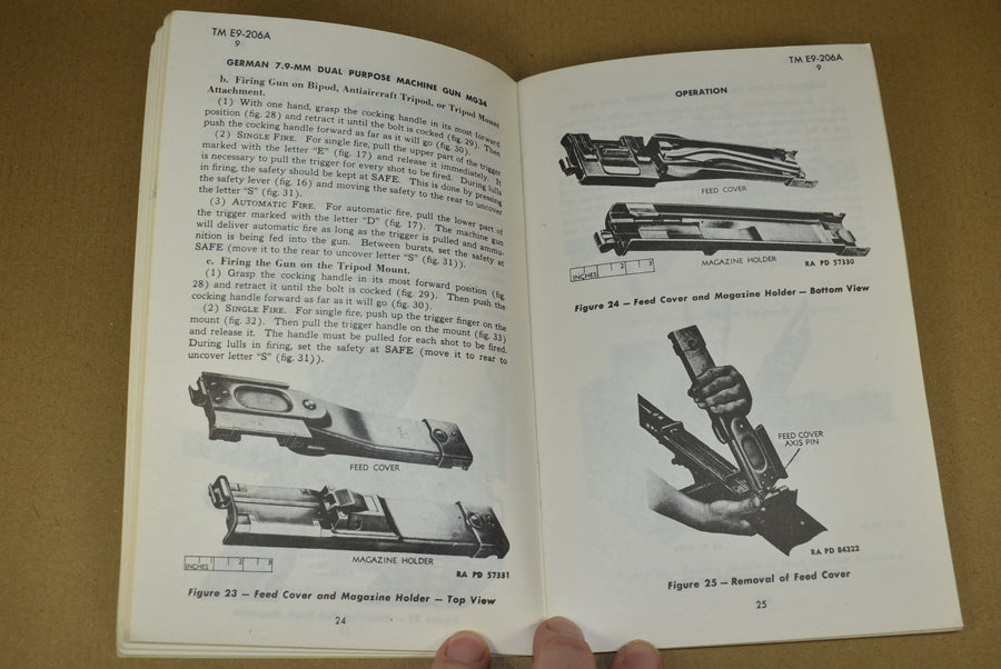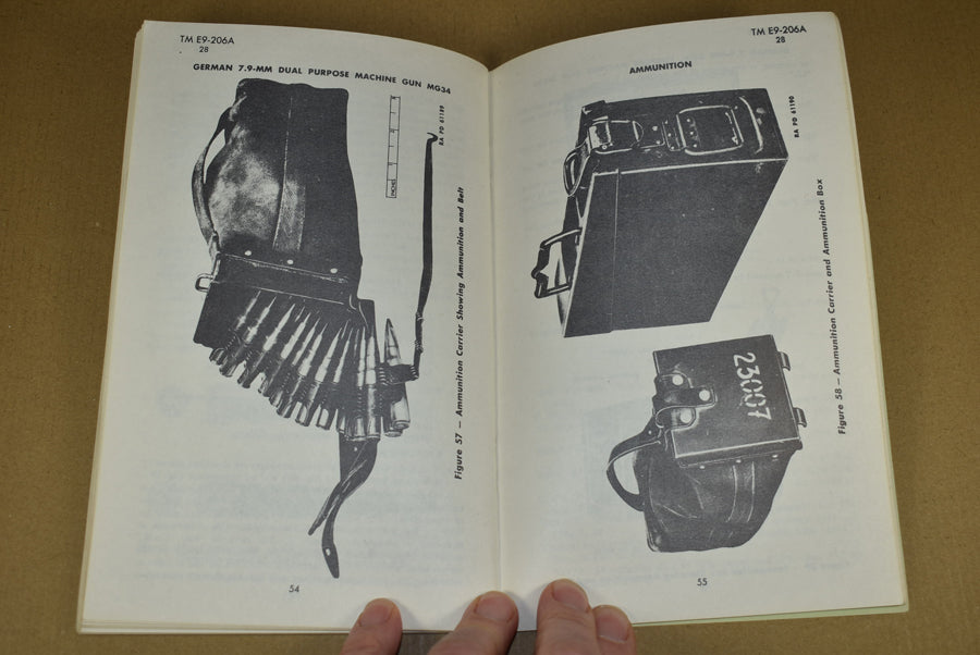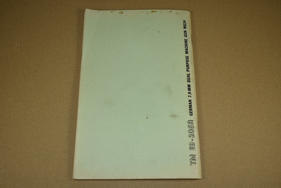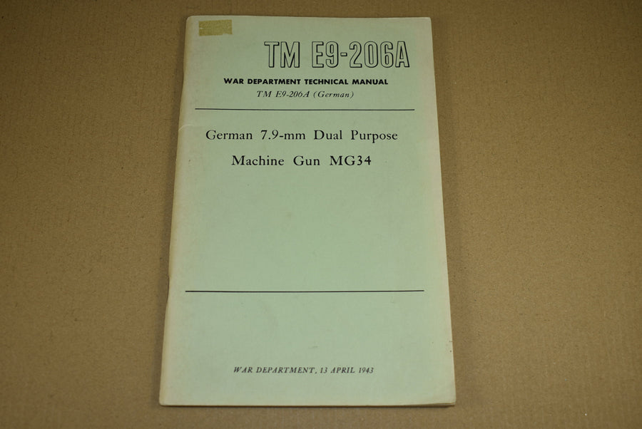 TM E9-206A German 7.9-mm Dual Purpose Machine Gun MG34. Yes, this exists! Medium size manual on the dreaded MG34. It is 1943 dated and contains 72 pages with many photos. This is a rare manual.