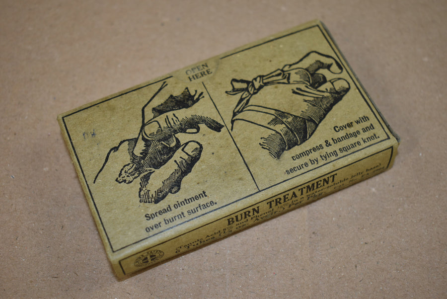 Burn treatment in cardboard box. Three tubes remain. Perfect to complete a First Aid kit.