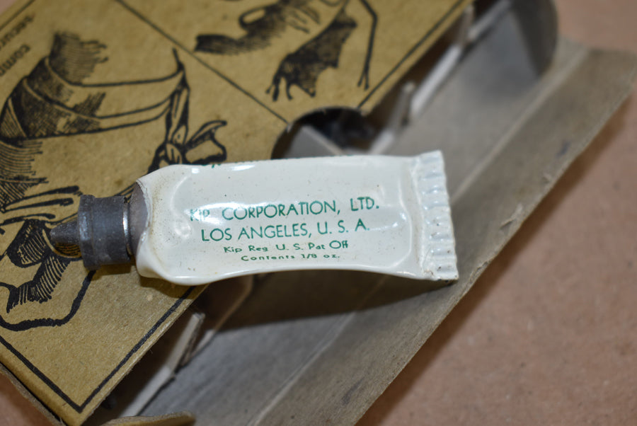 Traitement des brûlures dans une boîte en carton. Il reste trois tubes. Parfait pour compléter une trousse de premiers secours.
